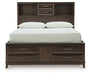 A rich, metropolitan finish. Unbeatable function. With this queen storage bed, it’s a breeze to create a casual contemporary hideaway full of style and convenience. It combines thoughtful craftsmanship and handy storage, with assorted drawers to help you maintain an organized and clutter-free space. Cubbies in the headboard keep bedtime reads close while also acting as the perfect perch for bedroom decor.