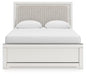 Details Includes upholstered panel headboard, panel footboard and panel rails , Made with engineered wood (MDF/particleboard/plywood) and decorative laminate for the right balance of affordability and durability , Matte white finish with subtle replicated wood grain , Decorative laminate replicates natural or man-made material surfaces with consistent color, pattern and texture , Polyester upholstery , Chrome-tone and glitter accents, Foundation/box spring required, sold separately, Mattress available, sold separately, Minor assembly required