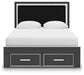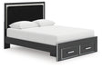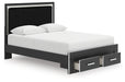 Details Includes upholstered panel headboard, storage footboard, roll slats and platform rails , Made with engineered wood (MDF/particleboard/plywood) and decorative laminate for the right balance of affordability and durability , Matte black finish with subtle replicated wood grain, Decorative laminate replicates natural or man-made material surfaces with consistent color, pattern and texture , Polyester upholstery , Chrome-tone and glitter accents, Large-scale chrome-tone handles with faceted details, 2 smooth-gliding drawers , Drawer interiors are lined with a faux linen laminate for a clean, finished look , Bed does not require additional foundation/box spring; accommodates most zero clearance adjustable bases with the addition of a bunkie board, Mattress available, sold separately, Minor assembly required