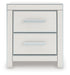 | Details | Made with engineered wood (MDF/particleboard/plywood) and decorative laminate for the right balance of affordability and durability, Matte white finish with subtle replicated wood grain, Decorative laminate replicates natural or man-made material surfaces with consistent color, pattern and texture, Chrome-tone accents, Large-scale chrome-tone handles with faceted details, 2 smooth-gliding drawers, Drawer interiors are lined with a faux linen laminate for a clean, finished look, Slim profile USB-A and USB-C charging ports, Power cord included; UL Listed, Minor assembly required | |