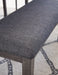 Details Includes dining table, bench and 4 dining chairs, Made of wood, veneer and engineered wood, Medium charcoal gray finish, Ladderback chairs, Cushioned seats covered in textured gray polyester upholstery, Table with tapered leg design, Assembly required