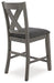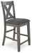 | Details | Includes counter height dining table and 6 counter height bar stools, Table made with hardwood solids, acacia veneer and MDF substrate, Stools made with solid hardwood frames, Antiqued gray wash finish, Polyester upholstery, Foam cushioned seats, Nailhead accents, Assembly required | |