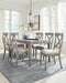 | Details | D291-25: Made of engineered wood, Tabletop made of melamine with a replicated barn wood effect, MEGA-TUFF® melamine surfaces are made of easy-clean melamine which is heat-, scratch-, water- and stain-resistant, Dining table with tapered legs and a gray finish, Seats up to 6, Assembly required, D291-01: Made of wood, Light beige woven polyester upholstery and gray finish, X-back design with tapered legs, Assembly required, | |