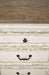 Serve up a French country-inspired feast for the eyes with this dining room server. Unique elements include cabinet storage beautified with decorative fretwork over mirrored glass and a doubly charming two-tone aesthetic pairing a chipped white with a distressed wood finished top.