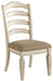 Bon appétit. With its rounded ladderback styling, chipped white finish and plushly cushioned seat, the Realyn dining room chair has all the right ingredients for a French country-inspired feast for the eyes.