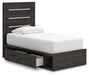 | Details | Includes panel headboard/footboard, rails with side storage and roll slats, Made with engineered wood (MDF/particleboard/plywood) and decorative laminate for the right balance of affordability and durability , Charcoal finish over replicated oak grain with authentic touch, Decorative laminate replicates natural or man-made material surfaces with consistent color, pattern and texture, 2 smooth-gliding drawers, 2 storage cubbies, Bed does not require additional foundation/box spring; accommodates most zero clearance adjustable bases with the addition of a bunkie board, Mattress available, sold separately, Minor assembly required | |