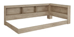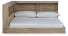 | Details | Made of engineered wood and decorative laminate, Dry, light finish with replicated oak grain and authentic touch, Headboard with 2 storage cubbies; side rail with 3 storage cubbies, 2 slim-profile USB charging ports, Power cord included; UL Listed, Flip components to create right-hand or left-hand corner design, Panel backs are unfinished; cannot be used as a free-standing piece, Assembly required, Ships in two boxes | |