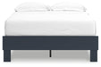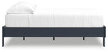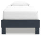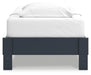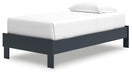 | Details | Twin platform bed includes footboard, rails and platform (does not include headboard), Made with engineered wood (MDF/particleboard/plywood) and decorative laminate for the right balance of affordability and durability, Matte navy blue finish, Decorative laminate replicates natural or man-made material surfaces with consistent color, pattern and texture, Bed does not require additional foundation/box spring; accommodates most zero clearance adjustable bases, Mattress available, sold separately, Assembly required | |