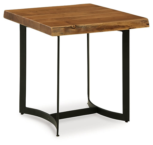 Signature Design by Ashley®This end table's classic yet contemporary good looks are hard to deny. Softly shaped posts with a light oak finish and wire-brushed wood grain text...