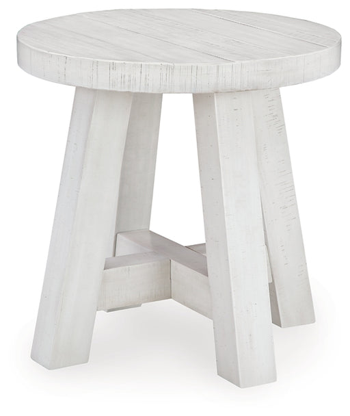 Signature Design by Ashley®Carefully crafted with farmhouse appeal, this end table features braced posts and a thick round tabletop. The off-white finish adds depth and chara...
