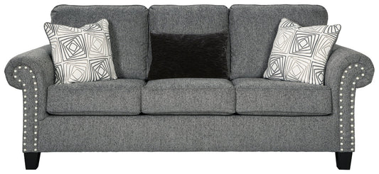 | Details | Corner-blocked frame, Attached back and loose seat cushions, Pewter-tone nailhead trim, High-quality foam cushions wrapped in poly fiber, 2 decorative pillows included, Pillows with soft polyfill, Polyester upholstery and pillows, Exposed feet with faux wood finish, Platform foundation system resists sagging 3x better than spring system after 20,000 testing cycles by providing more even support, Smooth platform foundation maintains tight, wrinkle-free look without dips or sags that can occur over time with sinuous spring foundations | |