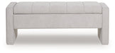 | Details | Polyester upholstery, Channel tufted seat cushion, Storage under hinged seat, Assembly required | |
