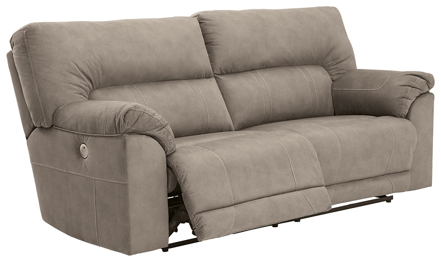 Strike a balance between the indulgent comfort you crave and the cool aesthetic you long for with this reclining power sofa. Offering the cool look of weathered leather, the feel-good slate-tone upholstery takes neutral to new heights. Simply chic divided back tailoring, jumbo stitching and a USB port in the one-touch power control are among the finer details that make all the difference.