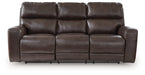 Versatile style teams up with everyday convenience to create this power reclining sofa. Settle into the sleek leather seating area and effortlessly recline with one-touch controls. Need some extra ambiance? Wireless speakers in the drop-down table make entertainment more immersive. And with the addition of wireless charging, you can keep go-to devices close as you lounge. Outfitted in a goes-with-anything neutral hue, it’s the perfect blend of chic transitional aesthetics and modern function.