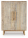 If it’s coastal chic or cottage quaint style you long for, this delightful accent cabinet is sure to satisfy. Doors with a carved scoop design in a whitewash and natural finish convey an easy-breezy sensibility, perfect for a relaxed vibe. A light wire-brushed effect enhances the wood grain. Two shelves cater to your out-of-sight storage needs. What a charming complement to your casual-chic decor.