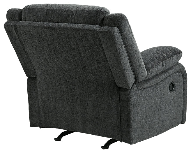 Built for luxury, this rocker recliner lets you kick back in reliable style. The thick, softly textured chenille upholstery provides a comfy surface on which to lounge. With bustle back construction and thickly cushioned armrests, this piece gives you the dependable support you need to unwind.