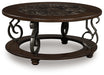 Details Made with birch veneer, decorative laminate and MDF substrate, Top with faux marble laminate and durable polyurethane topcoat, Warm brown finish, Metal legs with durable dark pewter-tone powder coat finish, Assembly required
