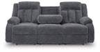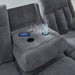 | Details | Dual-sided recliner; middle seat remains stationary, One-touch power control with adjustable positions and zero-draw USB charging port, Zero-draw technology only consumes power when the USB receptacle is in use, Corner-blocked frame with metal reinforced seat, Attached cushions, High-quality foam cushions wrapped in poly fiber, Polyester upholstery, Drop-down table with 2 cup holders and USB charging, Power cord included; UL Listed | |