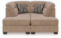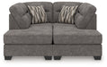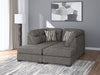 Details Includes 2 pieces: left-arm facing corner chaise and right-arm facing corner chaise, “Left-arm” and “right arm” describe the position of the arm when you face the piece, Corner-blocked frame, Attached back and loose seat cushions, High-quality foam cushions wrapped in poly fiber, Accent pillows included, Pillows with soft polyfill, Polyester upholstery, Exposed feet with faux wood finish, Platform foundation system resists sagging 3x better than spring system after 20,000 testing cycles by providing more even support, Smooth platform foundation maintains tight, wrinkle-free look without dips or sags that can occur over time with sinuous spring foundations