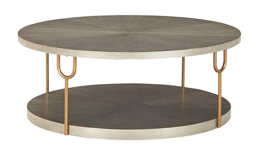 With the addition of a striking accent piece, one can take any room from ordinary to extraordinary. And this round accent table has just what it takes to elevate your home's decor to astonishing new heights. Made with wood veneer in a warm metallic silvertone finish and complemented by metal tubular legs, its artful composition and spartan design mesh seamlessly into any modern living space.