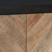 Diamond life. Make a bold, brilliant statement with this 4-door accent cabinet. Its two-tone styling merges a dark brown exterior with a multi-tonal distressed finish on the doors and handles. A diamond-shaped plank effect brings rich, dimensional flair to the scene. Adjustable shelving makes this high-end accent piece highly functional.