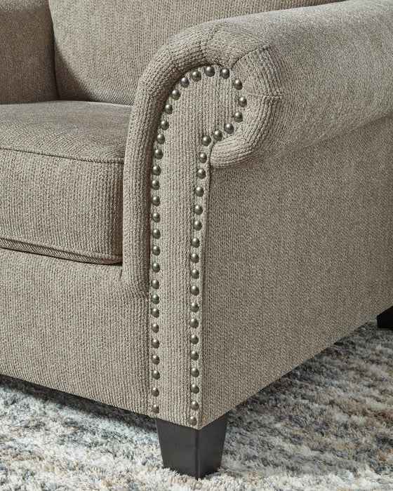 Details Corner-blocked frame, Attached back and loose seat cushion, High-quality foam cushions wrapped in poly fiber, Polyester chenille upholstery, Black nickel-tone nailhead trim, Exposed feet with faux wood finish, Platform foundation system resists sagging 3x better than spring system after 20,000 testing cycles by providing more even support, Smooth platform foundation maintains tight, wrinkle-free look without dips or sags that can occur over time with sinuous spring foundations