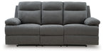Details Dual-sided recliner; middle seat remains stationary, Pull tab reclining motion, Corner-blocked frame with metal reinforced seat, Attached cushions, High-quality foam cushions wrapped in poly fiber, Polyester chenille upholstery, Drop-down table with 2 cup holders and USB charging, Power cord included; UL Listed