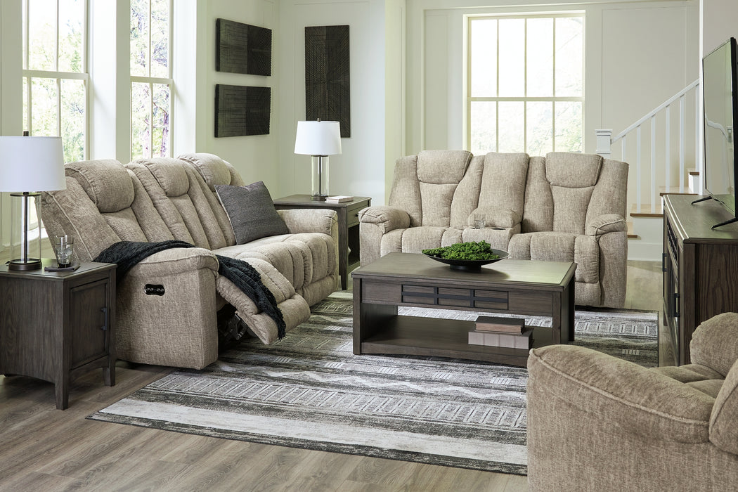 Change can be a good thing—especially when it takes lounging to a whole new level. Covered in high-pile fabric with rich tonal variation, this power seating package cradles you in comfort. And if it’s ambiance and connection you’re after, the set sports a blue LED backlight and USB charging to complete the experience.