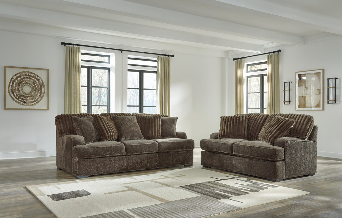 If you’re looking for a blend of extraordinary comfort and contemporary style, this seating package stacks up beautifully. It's a modern yet soft look—made all the more appealing by plush, cozy cushions that feel as great as they look. The rich chocolate color is simply smart and practical. And pretty sweet.
