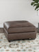 Modern comfort never looked so good. Accented with jumbo stitching for high-fashion flair, this oversized ottoman is the ultimate choice in comfortably cool, contemporary style. Its caramel-hued faux leather indulges with an upscale feel and wows like the real thing.