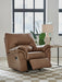 Modern comfort never looked so good. Sporting supremely soft yet durable cushions accented with high-fashion jumbo stitching, this stunning rocker recliner is the ultimate choice in comfortably cool, contemporary style. Its caramel-hued faux leather indulges with an upscale feel and wows like the real thing. And the recliner's pull-tab reclining makes it easy to kick back and relax.