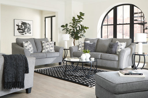 Benchcraft®A contemporary dream. This sofa checks off everything on your list. Its designer profile is accentuated with roll arms and pewter-tone nailhead tri...