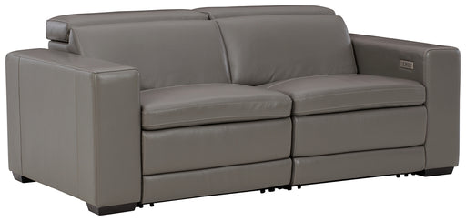 Signature Design by Ashley®This power reclining sofa in trendy gray is proof of just how far recliners have come when it comes to form and function. Ultra cool and contempora...