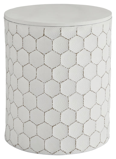 Signature Design by Ashley®Trendsetting and contemporary. Take a fashion risk with this accent stool. Outlined honeycomb design on hammered metal is teeming with texture. Uni...