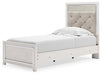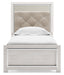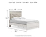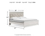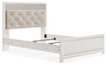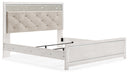| Details | Queen upholstered panel bed (headboard, footboard and rails), Made of engineered wood (MDF/particleboard) and decorative laminate, Light finish with subtle pearl effect over replicated cedar grain with authentic touch, Gray polyester upholstery with faux crystal button tufting, Glitter panel accent, Faceted chrome-tone accents, LED light strip with remote-controlled color and brightness options, Power cord included; UL Listed, Foundation/box spring required, sold separately, Mattress available, sold separately, Assembly required, Bed is compatible with an adjustable base | |