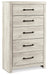 | Details | Made of engineered wood (MDF/particleboard) and decorative laminate, Wispy white finish over replicated oak grain with authentic touch, Large-scale hardware with dark finish, 5 smooth-gliding drawers, Drawer interiors are lined with a faux linen laminate for a clean, finished look, Safety is a top priority, clothing storage units are designed to meet the most current standard for stability, ASTM F 2057 (ASTM International), Drawers extend out to accommodate maximum access to drawer interior while maintaining safety | |