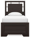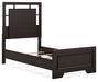 | Details | Includes panel headboard, footboard, rails and slats, Made with hardwood solids, engineered wood veneer and MDF substrates, Dark brown finish, Floating panel headboard, Picture frame footboard, Foundation/box spring required, sold separately , Mattress available, sold separately, Assembly required | |