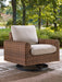 Get back to nature with the relaxed styling of the Angel Island outdoor swivel rocker lounge chair. Crafted with a sturdy aluminum frame and resin wicker, it offers exceptional durability and style. Plush cushions covered in high-performance Nuvella® fabric are as resilient as they are attractive. Sounds like fabulous form and function to us.