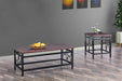 The Keystone 3 pc occ. has a black metal frame with wood grain top,