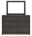 | Details | PCB3370B9: Includes headboard panel, headboard posts, storage footboard and rails, Made with engineered wood (MDF/particleboard/plywood) and decorative laminate for the right balance of affordability and durability , Dark charcoal finish over replicated oak grain, Decorative laminate replicates natural or man-made material surfaces with consistent color, pattern and texture, 2 smooth-gliding drawers in footboard, Foundation/box spring required, sold separately, Mattress available, sold separately, Assembly required, PCB3370B1: Includes dresser and mirror, Made with engineered wood (MDF/particleboard/plywood) and decorative laminate for the right balance of affordability and durability , Dark charcoal finish over replicated oak grain, Decorative laminate replicates natural or man-made material surfaces with consistent color, pattern and texture, Recessed hand grabs create hardware-less effect, 6 smooth-gliding drawers, Drawer interiors are lined with a faux linen laminate for a clean, finished look , Safety is a top priority, clothing storage units are designed to meet the most current standard for stability, ASTM F 2057 (ASTM International), Drawers extend out to accommodate maximum access to drawer interior while maintaining safety, Mirror attaches to back of dresser; can also be mounted on wall horizontally or vertically, Assembly required, | |