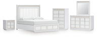Chalanna King Upholstered Storage Bed with Mirrored Dresser, Chest and Nightstand