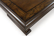 Lavish, luxurious living is within reach when you add this coffee table to your living room. Recalling a classic sense of refinement, its elegant scrolled legs make a beautifully bold statement. Ornate details on the apron add an air of opulence to the regal dark brown finish. The look is timeless. The feel? Right at home.