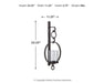 Details Made of bronze-tone metal with clear glass shade, Holds pillar candle (not included), Keyhole bracket hanger, Clean with a soft, dry cloth