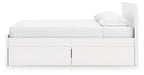 Details Includes panel headboard, platform bed panels, platform rails, roll slats and 4 side storage drawers, Made with engineered wood (MDF/particleboard/plywood) and decorative laminate for the right balance of affordability and durability, Solid white finish, Decorative laminate replicates natural or man-made material surfaces with consistent color, pattern and texture, 4 smooth-gliding storage drawers with ball-bearing side glides; vinyl-wrapped sides and back for durability, Bed does not require additional foundation/box spring; accommodates most zero clearance adjustable bases with the addition of a bunkie board, Mattress available, sold separately, Assembly required