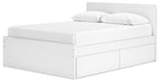| Details | Includes headboard, panels, rails, roll slats and 4 side storage drawers, Made with engineered wood (MDF/particleboard/plywood) and decorative laminate for the right balance of affordability and durability, Solid white finish, Decorative laminate replicates natural or man-made material surfaces with consistent color, pattern and texture, 4 smooth-gliding storage drawers with ball-bearing side glides; vinyl-wrapped sides and back for durability, Bed does not require additional foundation/box spring; accommodates most zero clearance adjustable bases with the addition of a bunkie board, Mattress available, sold separately, Assembly required, Assembly required | |