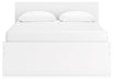 Create the modern bedroom of your dreams. This queen panel platform bed offers a minimal design with maximum style, combining ultra-clean lines and an easy-elegant solid white finish with a hardware-less aesthetic. Four spacious storage drawers with ball-bearing glides make putting things away a snap. And this bed doesn't need a box spring or foundation, so you can splurge on a mattress that's sure to carry you away to a soothing place.