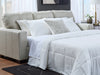 | Details | Corner-blocked frame, Attached back and loose seat cushions, High-quality foam cushions wrapped in poly fiber, 100% top grain leather covers inside areas such as the back, seat and arm cushions; skillfully matched faux leather covers the remaining areas, Due to its natural origin, real leather can show individual characteristics such as healed scars, growth marks, grain variation and shade variation, Natural variations make each hide unique and do not detract from the wearing qualities of leather, Exposed feet with faux wood finish, Included bi-fold queen memory foam mattress sits atop a supportive steel frame, Memory foam provides better airflow for a cooler night’s sleep, Memory foam encased in damask ticking | |