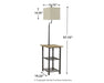 | Details | Assembly required, Clean with a soft, dry cloth, 2 fixed shelves, 3-way switch, 1 type A bulb (not included); 100 watts max or LED equivalent; UL Listed, Made of metal and wood with fabric shade | |
