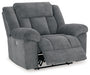 Big, bold comfort. Game time and movie nights meet their match with this power recliner. Made for ultimate indulgence, an extra-deep seat encourages you to sit back and bliss out. Customize the recliner and headrest to find your ideal viewing position with effortless one-touch controls. And with plush upholstery in a trendy hue, you won’t need to sacrifice style for cozy seating.
