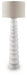 Details Made of polyresin with drum hardback fabric shade, White finish, 3-way switch, 1 E26 socket, type A bulb recommended (not included); 150 watts max or LED equivalent; UL Listed, Assembly required